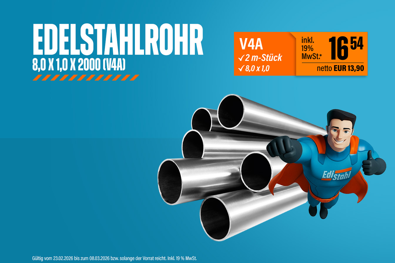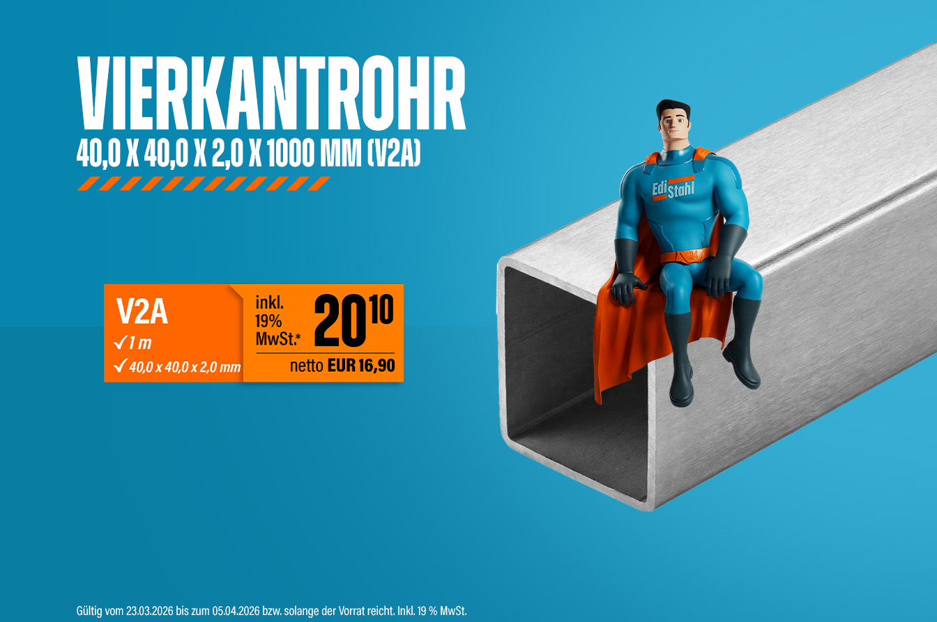 In unserem Edelstahlshop können Sie bequem online bestellen: Stöbern Sie durch unser umfangreiches Sortiment oder nutzen Sie die praktische Suche, um gezielt Ihr benötigtes Edelstahl Material zu kaufen. Profitieren Sie von einer schnellen Bestellabwicklung, verlässlicher Lieferung und erstklassigem Kundenservice.